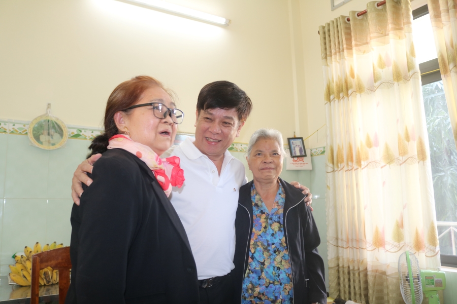 Ông Nguyễn Tấn Chúc - Phó Chủ tịch thường trực CĐCS Vietcombank Bình Định thăm và tặng quà Mẹ Việt Nam Anh hùng Võ Thị Sang
