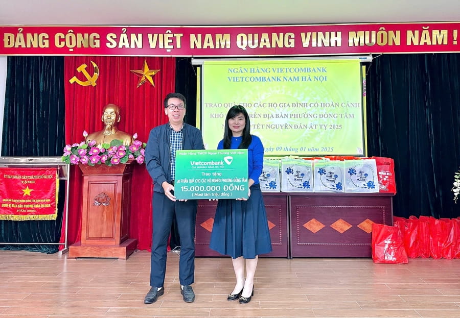 Với mong muốn mang một cái Tết ấm áp đến với những gia đình có hoàn cảnh khó khăn, từ ngày 09 đến 24/01/2025, Vietcombank Nam Hà Nội đã tổ chức nhiều hoạt động an sinh xã hội ý nghĩa, trao tặng các phần quà đến các hộ gia đình có hoàn cảnh khó khăn trên địa bàn thành phố Hà Nội với tổng giá trị hơn 50 triệu đồng.