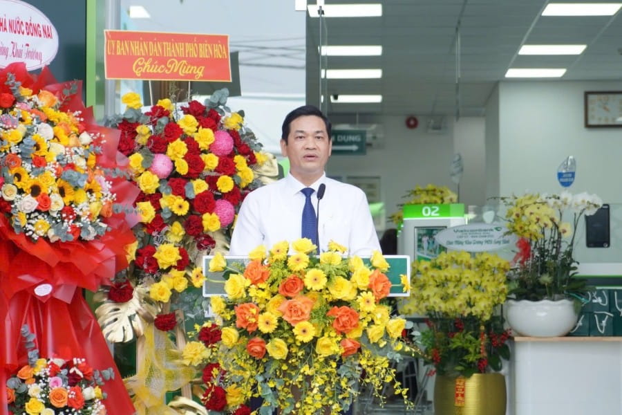 Tại buổi lễ, ông Phạm Thành Vinh - Giám đốc Vietcombank Đồng Nai đã phát biểu cảm ơn Ngân hàng Nhà nước Chi nhánh tỉnh Đồng Nai, các cơ quan ban ngành và Ban lãnh đạo Vietcombank đã tạo điều kiện để Phòng giao dịch Long Bình khai trương, đi vào hoạt động thuận lợi, đồng thời gửi lời cảm ơn tới các khách hàng, đối tác đã tin tưởng, đồng hành với Vietcombank Đồng Nai trong suốt thời gian qua. Phòng giao dịch Long Bình với diện mạo mới khang trang, hiện đại, tọa lạc tại khu vực đầy tiềm năng của thành phố, cùng với đội ngũ cán bộ trẻ, giỏi nghiệp vụ, năng động, chuyên nghiệp, chắc chắn sẽ là địa chỉ tin cậy, mang đến chất lượng dịch vụ tốt nhất, đem lại những trải nghiệm ấn tượng và sự hài lòng tối đa cho đông đảo khách hàng.