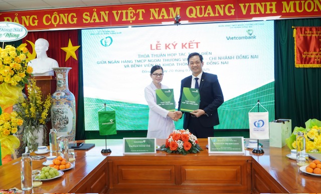 Với mong muốn đồng hành cùng bệnh viện trong việc đẩy mạnh tiến trình chuyển đổi số, Vietcombank Đồng Nai đã phối hợp chặt chẽ với bệnh viện triển khai đa dạng các giải pháp thanh toán không dùng tiền mặt và cung cấp các sản phẩm tài chính - ngân hàng hiện đại đến đội ngũ y bác sĩ, cán bộ nhân viên bệnh viện. Qua đó, góp phần vào công cuộc xây dựng bệnh viện thông minh, nâng cao chất lượng quản lý khám chữa bệnh và thanh toán viện phí, đảm bảo hiệu quả và minh bạch.