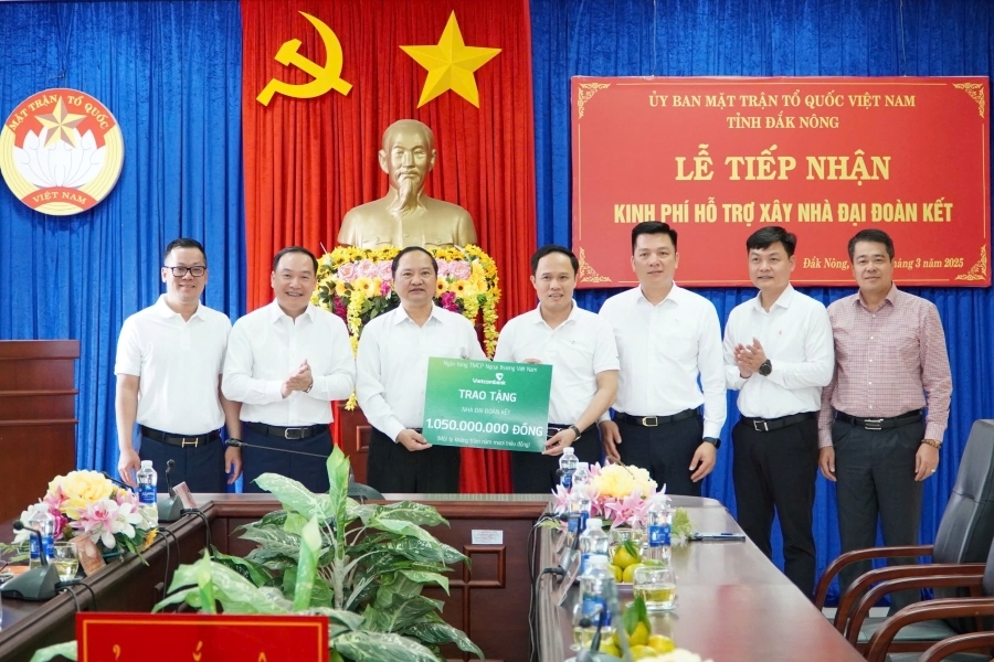Tham dự lễ tiếp nhận kinh phí hỗ trợ xây nhà đại đoàn kết trên địa bàn tỉnh Đắk Nông, về phía Vietcombank có ông Hồ Văn Tuấn - Phó Tổng Giám đốc; ông Nguyễn Danh Phương - UV BTV Đảng ủy chuyên trách công tác Đảng; ông Lê Kỳ - Giám đốc Vietcombank Đắk Nông. Về phía lãnh đạo tỉnh Đắk Nông có ông Hồ Xuân Trường - Phó Bí thư Tỉnh ủy; ông Phạm Văn Đức - Phó Chủ tịch thường trực Ủy ban MTTQ Việt Nam tỉnh Đắk Nông.