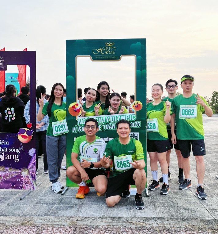 Cán bộ Vietombank Cà Mau check in tại ngày chạy Olympic 2025