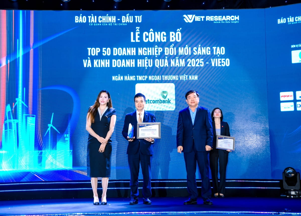 Đại diện Vietcombank nhận giải thưởng Top 50 Doanh nghiệp Đổi mới sáng tạo và Kinh doanh hiệu quả 2025