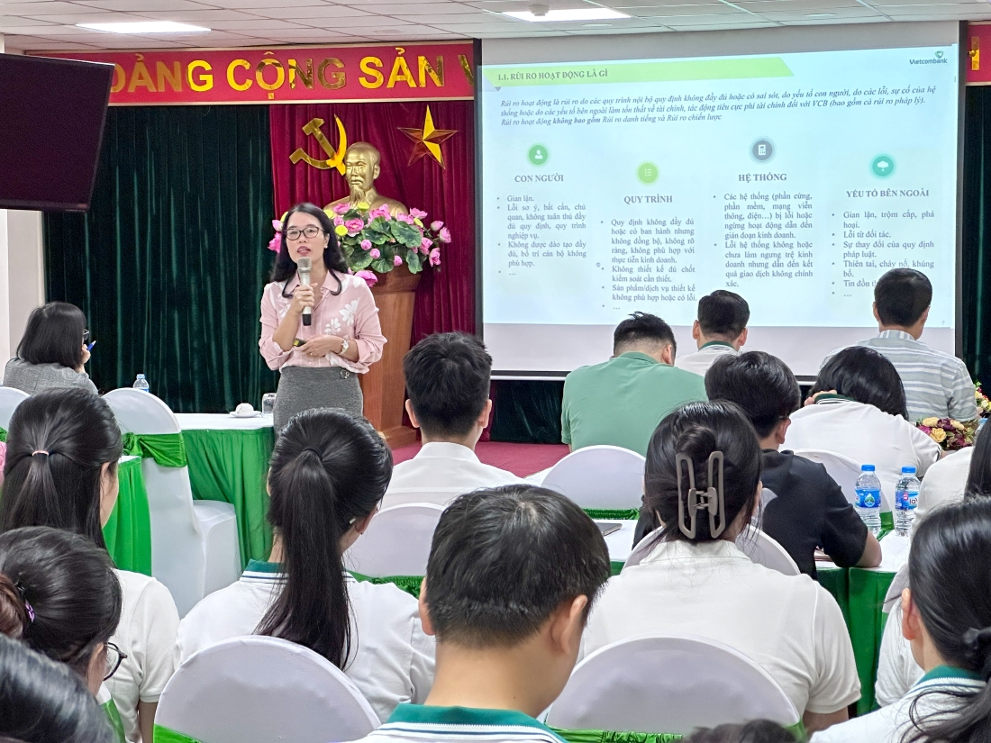 Đây không chỉ là dịp để các cán bộ Vietcombank Nam Hà Nội nâng cao kiến thức, kỹ năng quản lý rủi ro, mà còn là cơ hội để chia sẻ kinh nghiệm, học hỏi lẫn nhau, từ đó góp phần xây dựng môi trường làm việc chuyên nghiệp, an toàn và hiệu quả. Ngoài ra, toàn thể CBNV đã được tiếp thu và nâng cao nhận thức về tầm quan trọng của tính tuân thủ quy trình hoạt động nhằm giảm thiểu các rủi ro có thể xảy ra trong quá trình làm việc, đồng thời tích luỹ thêm nhiều kinh nghiệm bổ ích vào hành trang công tác, hướng tới mục tiêu xây dựng tập thể Vietcombank Nam Hà Nội vững mạnh, hoàn thành tốt nhiệm vụ kinh doanh 2025.