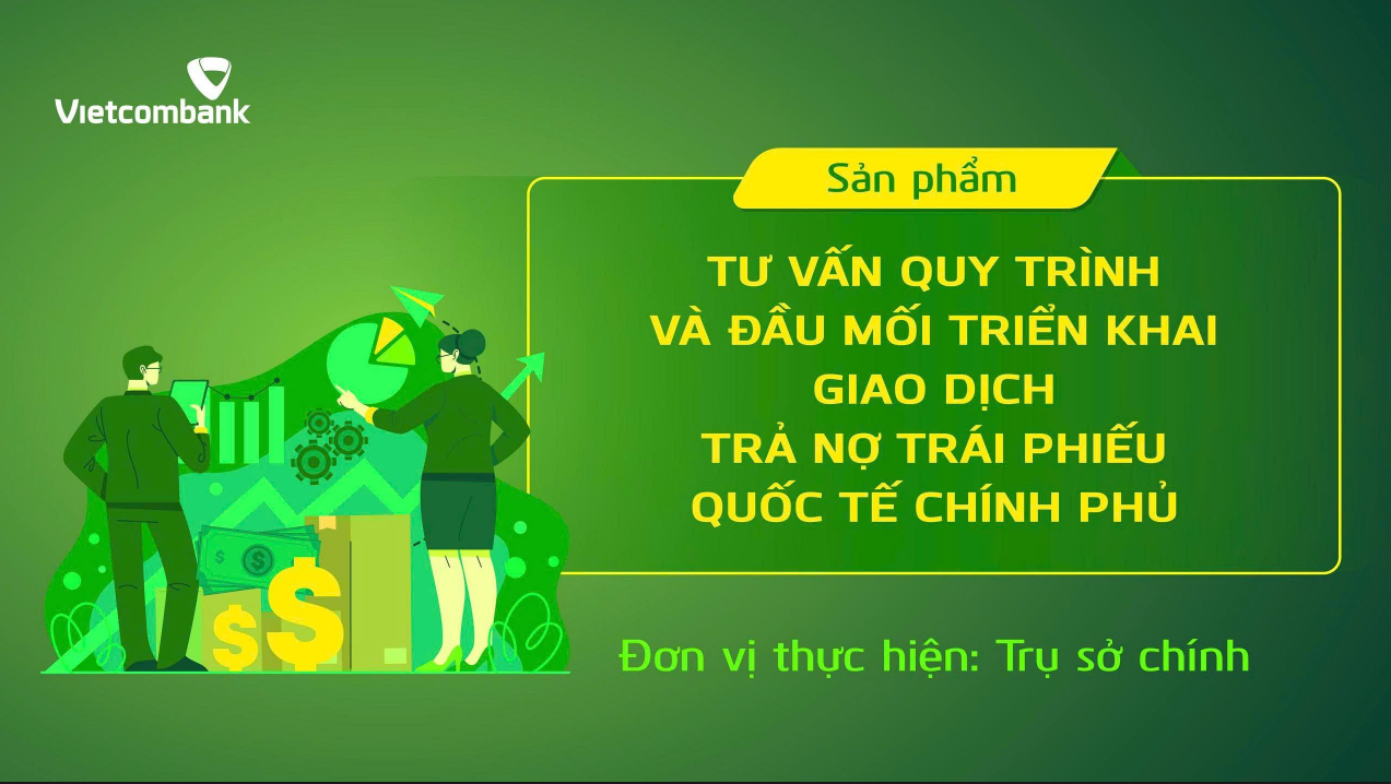 Trong lĩnh vực tài chính công, Vietcombank tiếp tục khẳng định vai trò ngân hàng chủ lực khi triển khai Tư vấn quy trình, cách thức các bước thực hiện và đầu mối triển khai giao dịch trả nợ trái phiếu quốc tế Chính phủ trị giá hơn 1 tỷ USD. Đây là giao dịch có giá trị lớn, yêu cầu kỹ thuật nghiệp vụ cao và sự phối hợp chặt chẽ giữa các đơn vị liên quan trong và ngoài nước. Việc hoàn thành đúng hạn, chính xác và an toàn giao dịch đã góp phần nâng cao uy tín quốc gia và tăng cường thị phần thanh toán quốc tế của Vietcombank.