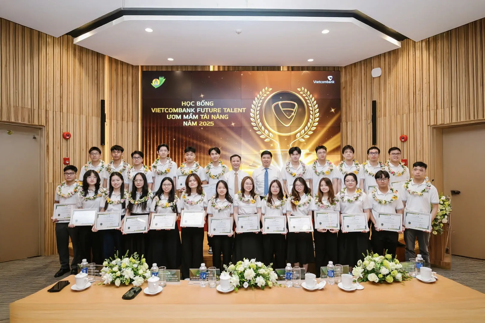 Ngày 30/7/2025, tại Trường Đào tạo và Phát triển Nguồn nhân lực Vietcombank, Chương trình “Vietcombank Future Talent” – Trao học bổng và vinh danh học sinh, sinh viên tiêu biểu năm 2025 đã diễn ra trong không khí trang trọng và ấm áp. Bên cạnh phần vinh danh các học sinh đạt thành tích cao, chương trình năm nay đặc biệt ghi dấu với 31 suất học bổng “Vietcombank Future Talent – Ươm mầm tài năng”, dành cho các sinh viên xuất sắc là con của cán bộ Vietcombank.