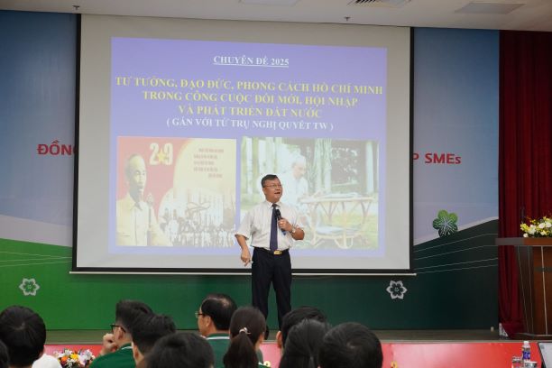 Tại hội nghị, đồng chí Đào Khắc Trung - Giảng viên cao cấp của Học viện Chính trị Khu vực II đã truyền đạt những nội dung cốt lõi, khẳng định giá trị, ý nghĩa thời đại của tư tưởng, đạo đức, phong cách Hồ Chí Minh trong sự nghiệp cách mạng hiện nay; gắn với việc học tập, quán triệt các nghị quyết quan trọng của Bộ Chính trị như: Nghị quyết số 57-NQ/TW về phát triển khoa học, công nghệ, đổi mới sáng tạo và chuyển đổi số quốc gia: Nghị quyết số 59-NQ/TW về hội nhập quốc tế trong tình hình mới; Nghị quyềt số 66-NQ TW về đổi mới công tác xây dựng và thi hành pháp luật; Nghị quyết số 68-NQ TI về phát triển kinh tế tư nhân trở thành động lực quan trọng của nền kinh tế thị trường định hướng xã hội chủ nghĩa … Qua đó, tạo sự đồng thuận, thống nhất trong nhận thức và hành động của cán bộ, đảng viên, người lao động Vietcombank Tân Bình Dương; thúc đẩy tinh thần hăng hái, tích cực tham gia các phong trào thi đua yêu nước, nỗ lực phấn đấu, đóng góp công sức để đạt được các nhiệm vụ chính trị, kế hoạch kinh doanh của Chi nhánh nói riêng, của Vietcombank nói chung và góp phần vào công cuộc thực hiện mục tiêu tăng trưởng kinh tế - xã hội của cả nước trên 8% năm 2025.