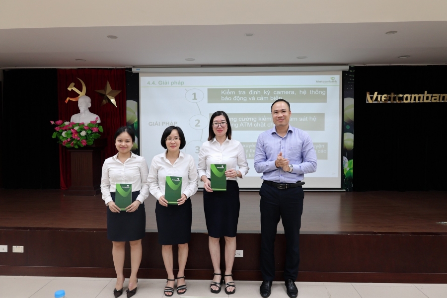 Tiếp theo, ba nhóm đại diện các phòng nghiệp vụ đã trình bày các nội dung liên quan đến rủi ro trong ba mảng chính: thẻ, tài khoản và ngân quỹ. Các bài trình bày được xây dựng công phu, lồng ghép các tình huống thực tế, giúp phân tích sâu sắc các rủi ro tiềm ẩn và đề xuất các chốt kiểm soát phù hợp. Phần thảo luận đã diễn ra sôi nổi, cởi mở với nhiều ý kiến đóng góp thiết thực từ cán bộ và lãnh đạo các phòng ban, hướng đến việc áp dụng hiệu quả vào thực tiễn công việc.