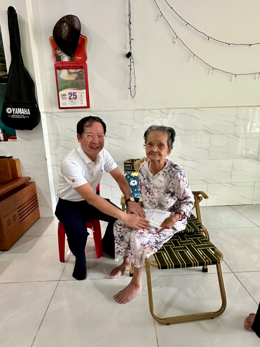 Đ/c Lê Tấn Lân - Bí thư Chi bộ, Giám đốc Chi nhánh ân cần thăm hỏi mẹ Việt Nam anh hùng