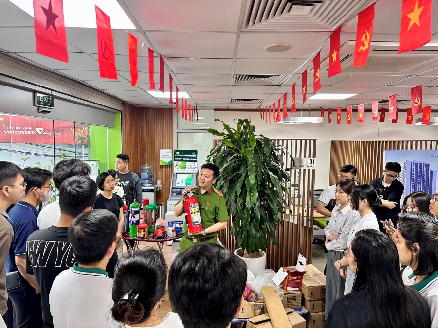 Sáng ngày 23/8, tại trụ sở Chi nhánh, Vietcombank Nam Hà Nội đã phối hợp với Phòng Cảnh sát Phòng cháy chữa cháy và Cứu nạn cứu hộ (PCCC & CNCH) phường Hoàng Mai và Công an thành phố Hà Nội tổ chức Hội nghị tuyên truyền, phổ biến kiến thức pháp luật, huấn luyện kỹ năng về PCCC & CNCH.
