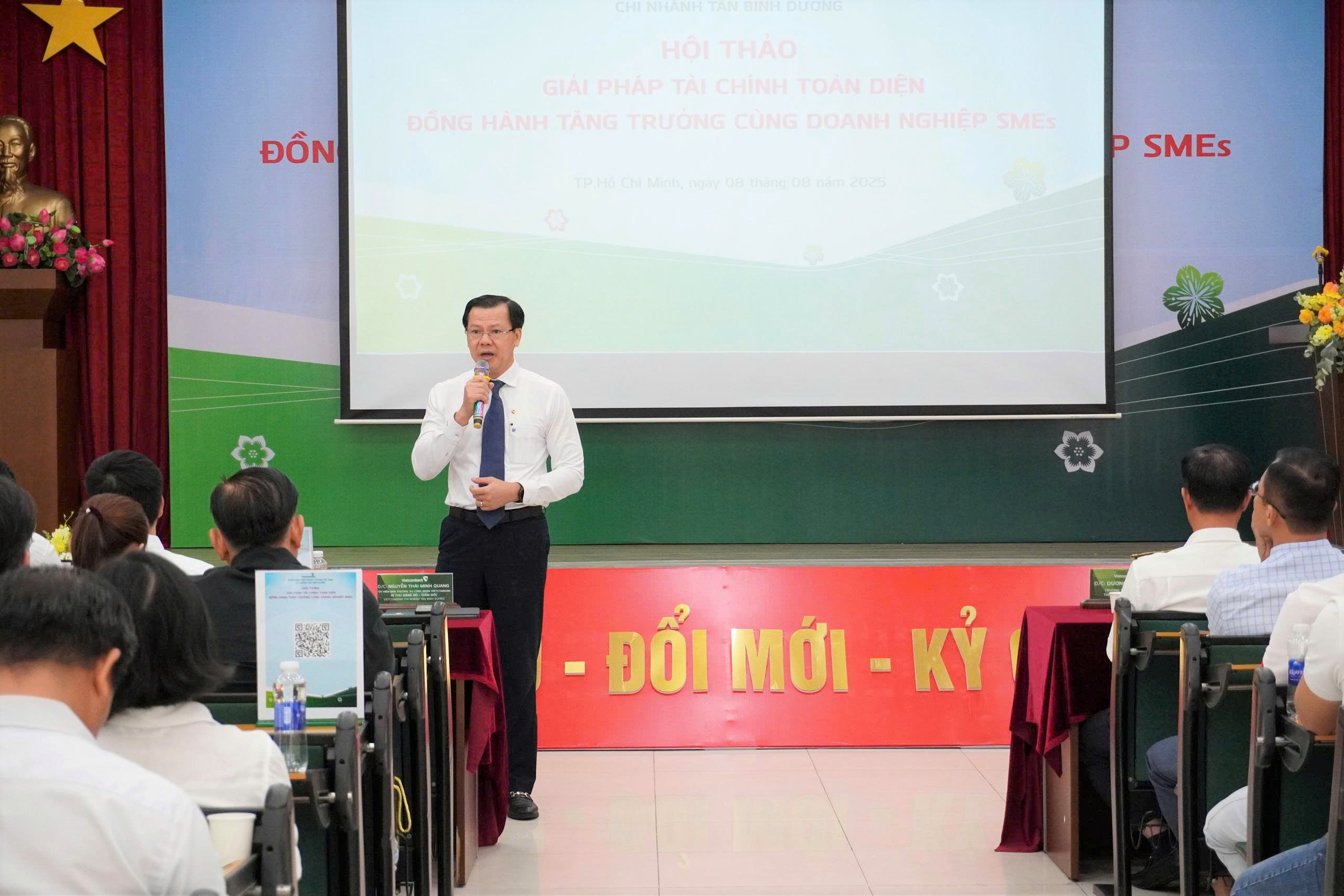 Phát biểu khai mạc hội thảo, ông Nguyễn Thái Minh Quang - Giám đốc Vietcombank Tân Bình Dương gửi lời tri ân sâu sắc đến các khách hàng doanh nghiệp đã luôn tin tưởng và đồng hành cùng ngân hàng. Ông khẳng định: “Với vai trò là đối tác tài chính chiến lược, Vietcombank cam kết không ngừng đổi mới, mang đến những giải pháp ưu việt, toàn diện, sát cánh cùng doanh nghiệp vượt qua thách thức và hướng tới thành công bền vững”.