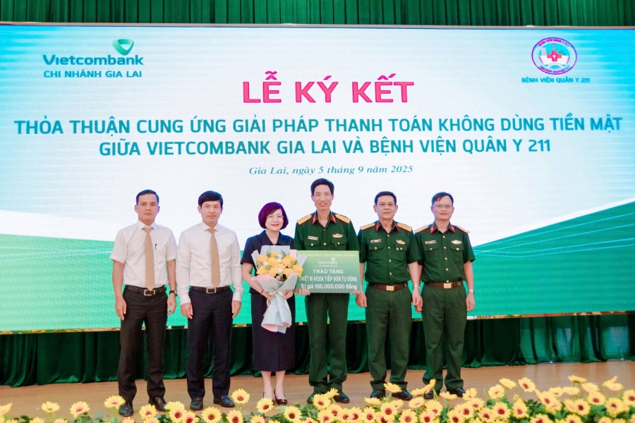 Cũng nhân sự kiện, Vietcombank Gia Lai đã thực hiện tài trợ 02 Kiosk tiếp đón tự động cho Bệnh viện quân y 211 tích hợp các thủ tục và phục vụ quy trình khám chữa bệnh tại bệnh viện trị giá 100 triệu đồng. Hoạt động này nhằm triển khai dịch vụ VCB Icare 2 - Giải pháp tài chính số toàn diện do Vietcombank phát triển, nhằm số hóa toàn bộ quy trình thanh toán viện phí, đồng thời tối ưu hóa trải nghiệm khám chữa bệnh cho người dân cũng như phục vụ cho các giải pháp thanh toán không dùng tiền mặt.