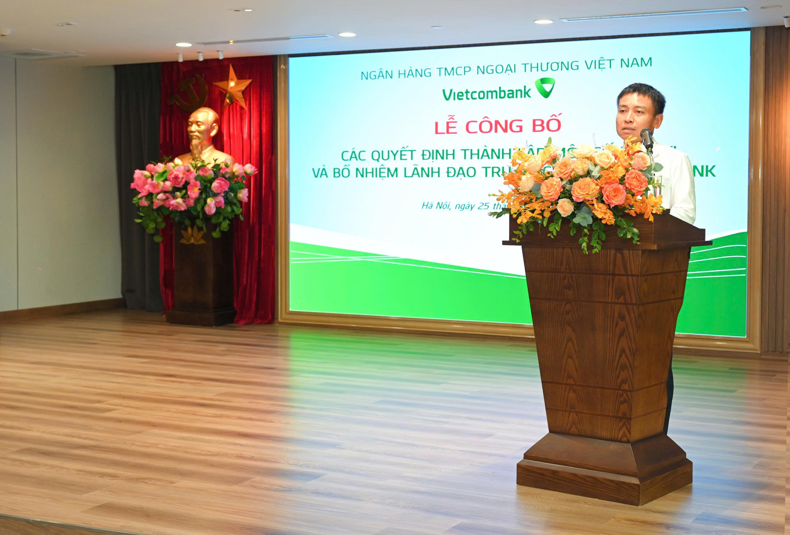 Phát biểu chỉ đạo và giao nhiệm vụ tại buổi lễ, ông Nguyễn Thanh Tùng - Chủ tịch HĐQT Vietcombank nhấn mạnh việc kiện toàn, sắp xếp tổ chức là yêu cầu tất yếu nhằm tinh gọn bộ máy, tối ưu hóa nguồn lực, nâng cao hiệu quả hoạt động và sức cạnh tranh của ngân hàng trong bối cảnh hội nhập và chuyển đổi số. Thời gian qua, Vietcombank đã triển khai nhiều bước đi quan trọng như sáp nhập, tinh giản các phòng ban, thành lập mới một số đơn vị trọng yếu và bổ nhiệm nhân sự lãnh đạo để đáp ứng yêu cầu phát triển trong giai đoạn mới.