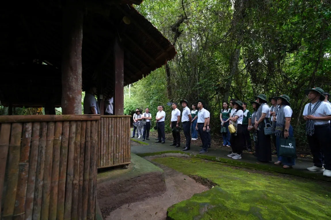 Trong hành trình Về nguồn năm 2025 với chủ đề “Theo dấu chân lịch sử”, đoàn đại biểu Đảng bộ Viecombank đã tới thăm và thành kính dâng hương tưởng nhớ công ơn của Chủ tịch Hồ Chí Minh và các anh hùng liệt sĩ tại di tích Trung ương Cục miền Nam; Xem những thước phim tư liệu quý giá và thăm nhà trưng bày khu di tích lịch sử văn hóa quốc gia đặc biệt căn cứ Trung ương Cục miền Nam; Thăm các địa điểm thuộc di tích, nhà làm việc của các đồng chí lãnh đạo cấp cao của cách mạng miền Nam; dâng hương tại di tích lịch sử Đền tưởng niệm Bến Dược.