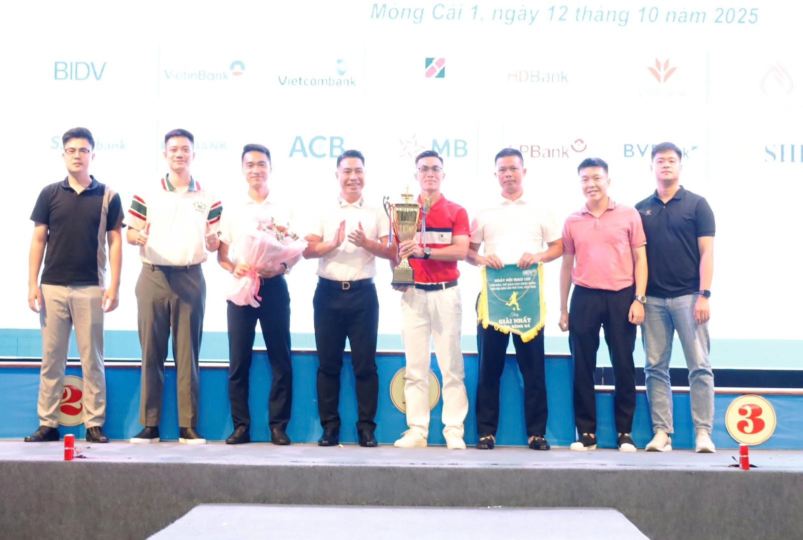 Vietcombank Móng Cái (đứng thứ 5 từ trái sang) nhận chức vô địch toàn đoàn