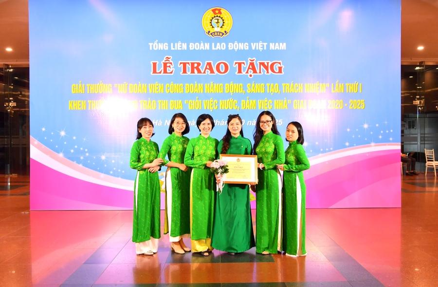 Giải thưởng tôn vinh 10 cá nhân tiêu biểu toàn quốc, đồng thời khen thưởng 20 tập thể và 60 cá nhân có thành tích xuất sắc trong phong trào thi đua “Giỏi việc nước, đảm việc nhà” giai đoạn 2020 - 2025. Công đoàn cơ sở Trụ sở chính Vietcombank vinh dự là tập thể được khen thưởng trong phong trào thi đua “Giỏi việc nước, đảm việc nhà”.
