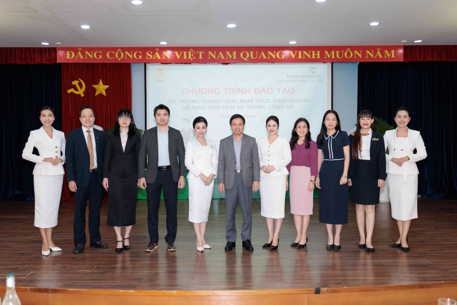 Trong khuôn khổ các hoạt động hướng tới chào mừng kỷ niệm 32 năm ngày thành lập Vietcombank Nam Sài Gòn (01/10/1993 - 01/10/2025), kỷ niệm 95 năm Ngày Phụ nữ Việt Nam (20/10/1930 - 20/10/2025) và chào mừng Đại hội Công đoàn các cấp tiến tới Đại hội lần thứ VIII Công đoàn Ngân hàng Việt Nam, Đại hội lần thứ XIV Công đoàn Việt Nam; BCH CĐCS Vietcombank Nam Sài Gòn đã tổ chức khóa đào tạo “Phong thái thanh lịch” cho cán bộ nhân viên chi nhánh vào ngày 14/10/2025.