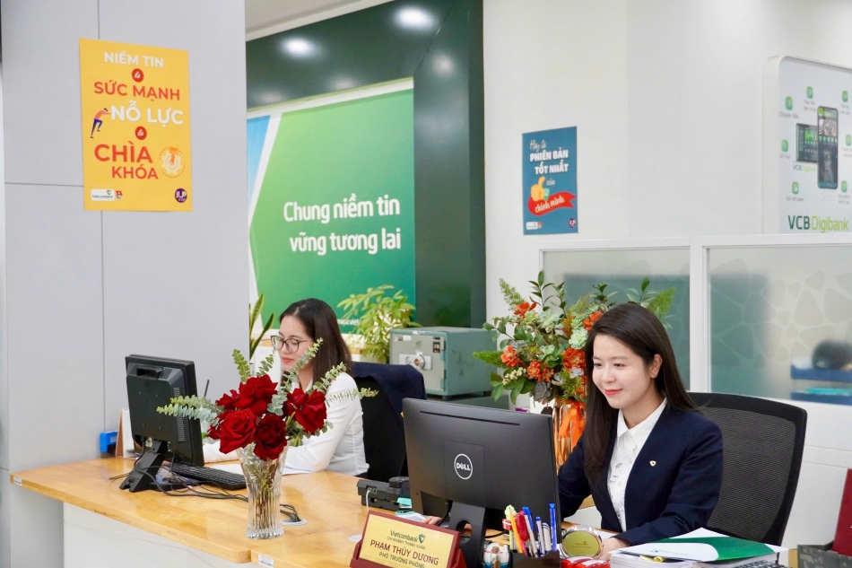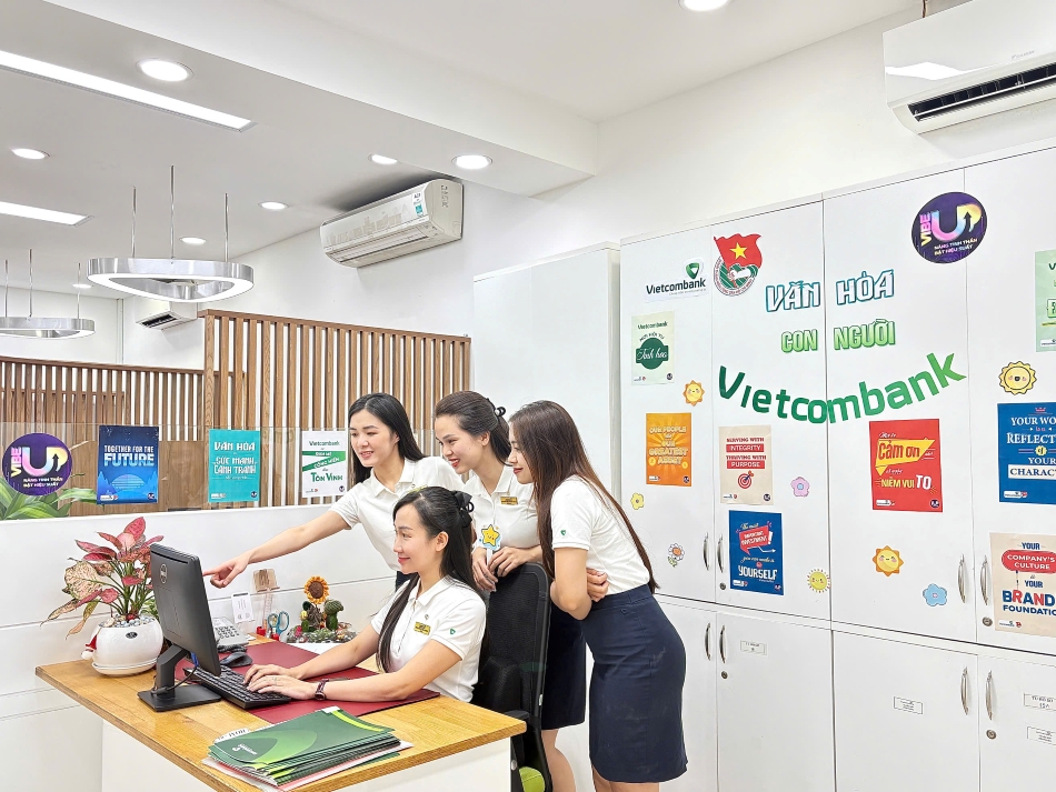 Cán bộ, đoàn viên Vietcombank làm việc trong không gian tươi mới của phong trào UpVibe