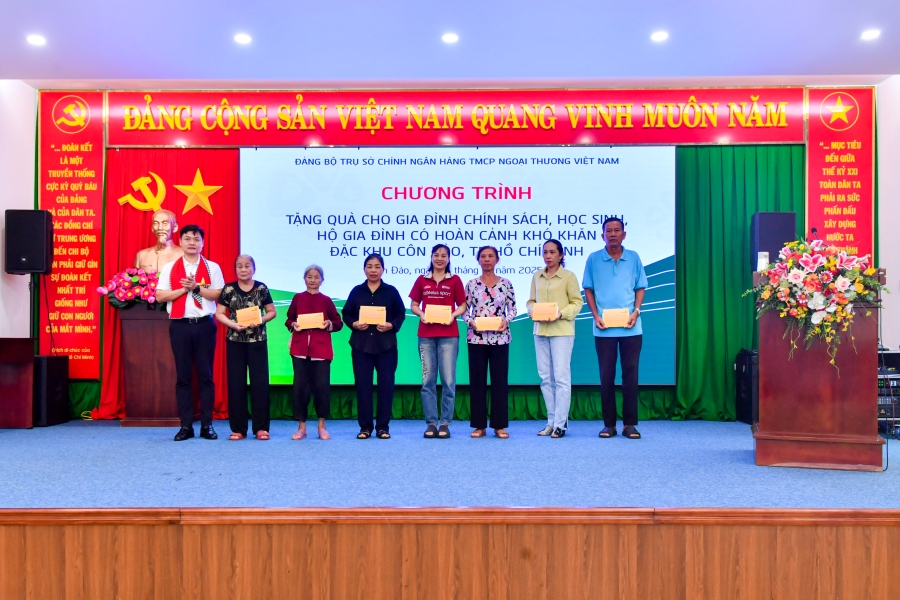 Trong hành trình tri ân - hướng về Côn Đảo, Đảng bộ Vietcombank trang trọng tổ chức chương trình tặng quà các gia đình chính sách, gia đình có công với cách mạng, học sinh có hoàn cảnh khó khăn.