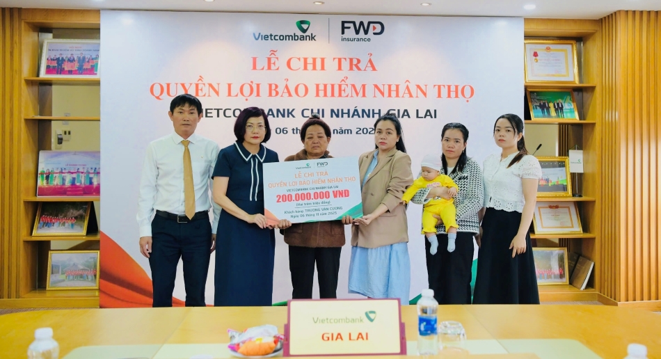Người được bảo hiểm là ông Trương Văn Cương - khách hàng của phòng giao dịch Trà Bá thuộc Vietcombank Gia Lai. Ông Cương đã tham gia gói bảo hiểm “FWD Vững ước mơ” - Sản phẩm bảo hiểm dư nợ tín dụng cá nhân. Tuy nhiên, rủi ro đã xảy ra với khách hàng. Sau khi nắm bắt được thông tin, phòng giao dịch Trà Bá - Vietcombank Gia Lai đã phối hợp cùng Công ty TNHH Bảo hiểm Nhân thọ FWD Việt Nam nhanh chóng tiến hành các thủ tục có liên quan và thực hiện chi trả quyền lợi bảo hiểm trị giá 200.000.000 đồng cho người thân của khách hàng. Số tiền chi trả dù không thể bù đắp được những mất mát của người thân khách hàng nhưng đây là một phần chi phí giúp gia đình trang trải những khó khăn.