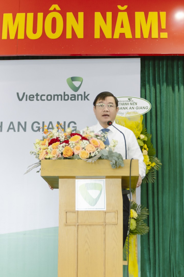 Phát biểu tại Đại hội, đồng chí Nguyễn Đăng Hộ – Ủy viên BCH Công đoàn Vietcombank, Giám đốc Vietcombank Tây Cần Thơ ghi nhận và đánh giá cao những đóng góp của tổ chức Công đoàn cơ sở Vietcombank An Giang trong thời gian qua, đồng thời bày tỏ mong muốn Ban Chấp hành nhiệm kỳ mới sẽ tiếp tục phát huy tinh thần đoàn kết, đổi mới, sáng tạo, góp phần xây dựng tập thể ngày càng vững mạnh.