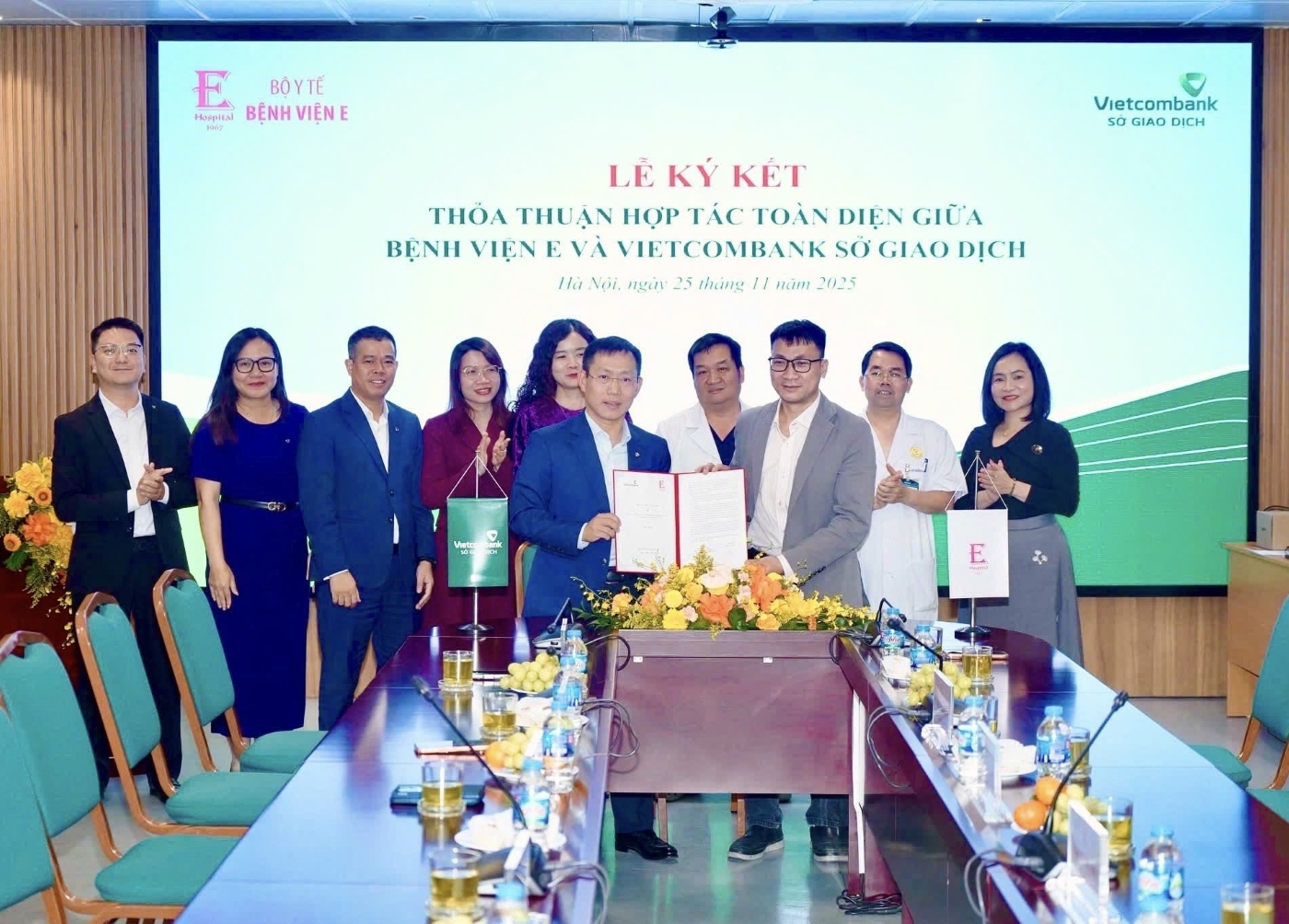 Chiều 25/11/2025, tại Hà Nội, Vietcombank Sở giao dịch và Bệnh viện E đã tổ chức lễ ký kết thỏa thuận hợp tác toàn diện, đánh dấu cột mốc quan trọng trong mối quan hệ hợp tác chiến lược giữa hai bên.