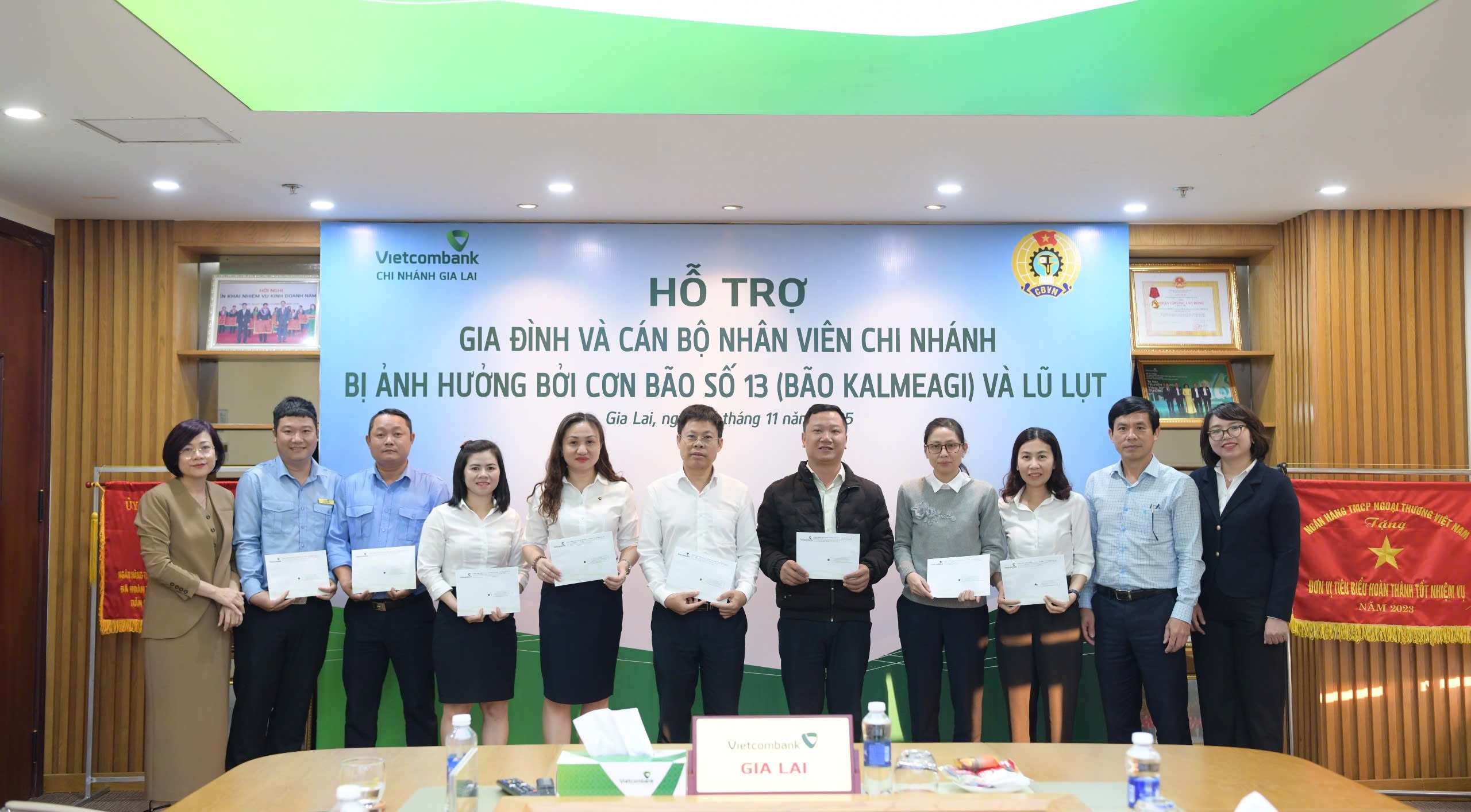 Trong dịp này, bằng nguồn quỹ phúc lợi của chi nhánh, Vietcombank Gia Lai đã hỗ trợ cho 20 CBNV bị ảnh hưởng bởi bão lũ với tổng giá trị 66 triệu đồng. Đây không chỉ là sự nhân văn mà còn là một nguồn động viên, chia sẻ lớn lao giúp CBNV ổn định đời sống, an tâm công tác, tiếp tục xây dựng Viecombank Gia Lai phát triển vững mạnh.