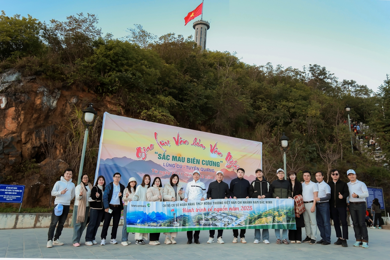 Từ ngày 22 đến 23/11/2025, Chi bộ cơ sở Vietcombank Nam Bắc Ninh đã tổ chức chương trình về nguồn tại tỉnh Hà Giang cũ (nay là tỉnh Tuyên Quang) với những hoạt động đầy ý nghĩa: dâng hương tưởng niệm tại Nghĩa trang Liệt sĩ Quốc gia Vị Xuyên và thăm Cột cờ Lũng Cú - điểm cực Bắc thiêng liêng của Tổ quốc.