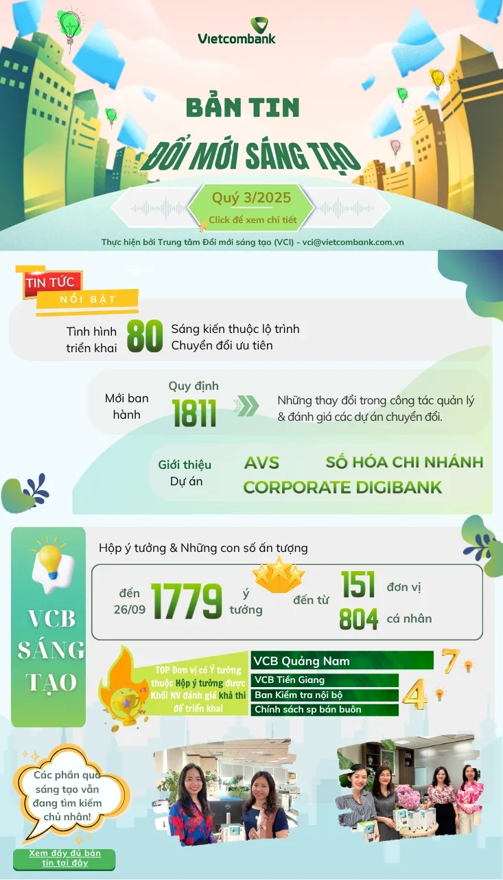 Quý III/2025 khép lại với nhiều dấu ấn nổi bật trong hành trình đổi mới sáng tạo tại Vietcombank