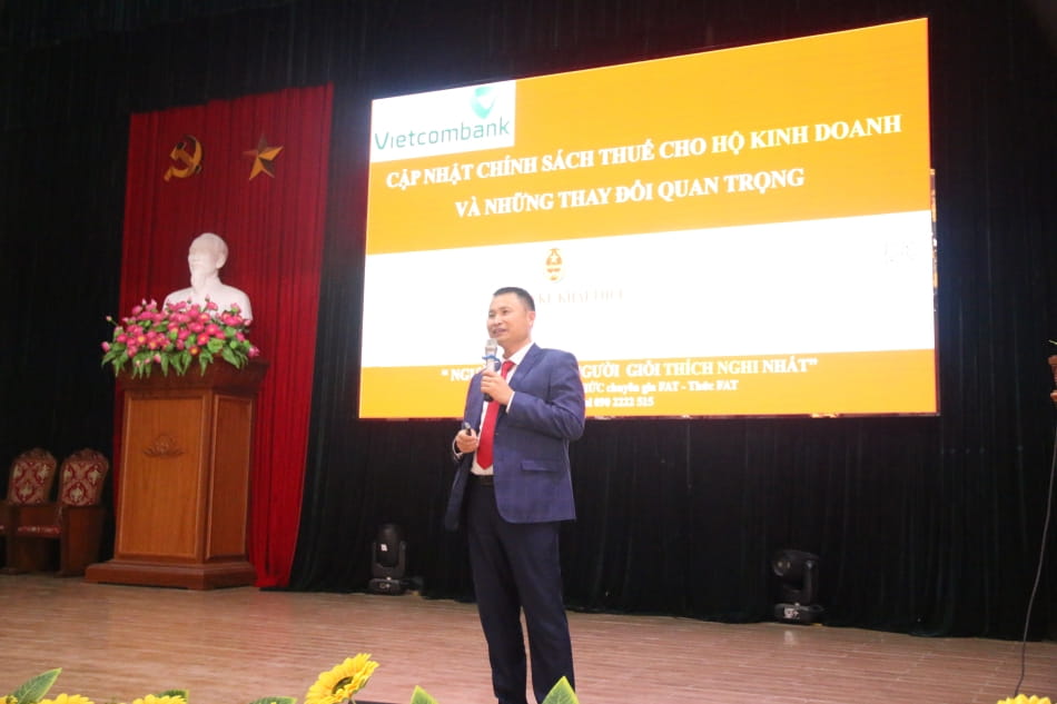Phát biểu khai mạc, ông Phạm Thái Sơn - Phó giám đốc Vietcombank Phố Hiến nhấn mạnh: Việc chuyển đổi từ thuế khoán sang kê khai không chỉ là yêu cầu bắt buộc theo Luật Quản lý thuế và các văn bản hướng dẫn mới, mà còn là cơ hội để các hộ kinh doanh nâng cao tính minh bạch, tiếp cận nguồn vốn ngân hàng thuận lợi hơn, giảm chi phí vận hành và mở rộng quy mô kinh doanh bền vững. Với vai trò ngân hàng thương mại hàng đầu, Vietcombank Phố Hiến xác định rõ trách nhiệm đồng hành cùng khách hàng trong suốt quá trình chuyển đổi này.