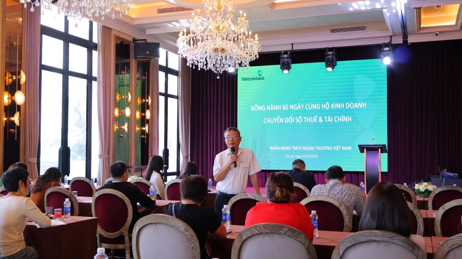 Sáng ngày 02/12/2025, tại Hội trường L’amor Boutique Hotel, Ngân hàng TMCP Ngoại thương Việt Nam - Chi nhánh Quy Nhơn (Vietcombank Quy Nhơn) đã tổ chức thành công sự kiện “Vietcombank Quy Nhơn đồng hành cùng hộ kinh doanh chuyển đổi mô hình từ thuế khoán sang kê khai”.