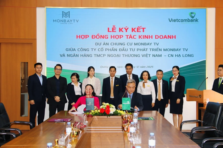 Ngày 05/12/2025, tại trụ sở Vietcombank Hạ Long, số 166 đường Hạ Long, phường Bãi Cháy, tỉnh Quảng Ninh đã diễn ra lễ ký kết hợp đồng hợp tác kinh doanh hỗ trợ khách hàng bán lẻ mua nhà tại dự án chung cư Monbay TV giữa Vietcombank Hạ Long và Công ty Cổ phần Đầu tư Phát triển Monbay TV.