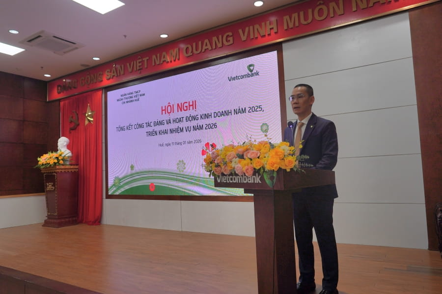 Sáng ngày 11/01/2026, Ngân hàng TMCP Ngoại thương Việt Nam - Chi nhánh Huế (Vietcombank Huế) đã trang trọng tổ chức Hội nghị tổng kết công tác Đảng và hoạt động kinh doanh năm 2025, triển khai nhiệm vụ năm 2026 với sự tham gia của toàn thể cán bộ, nhân viên và người lao động.