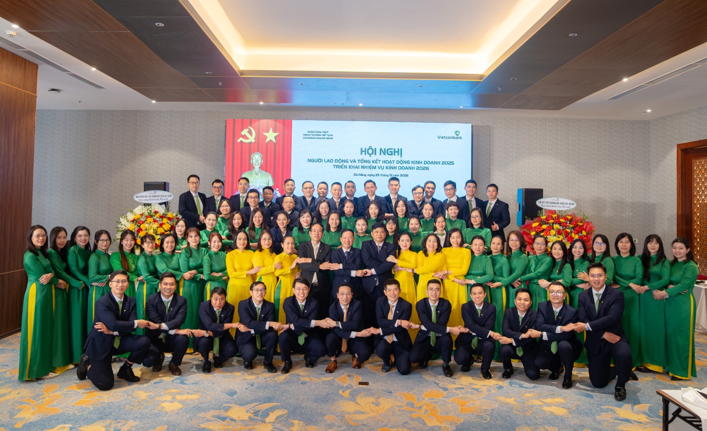 Sáng ngày 25/01/2026, tại KOI Resort & Residence Đà Nẵng (số 11 Trường Sa, phường Ngũ Hành Sơn, TP. Đà Nẵng), Vietcombank Nam Đà Nẵng đã trang trọng tổ chức Hội nghị Người lao động và Hội nghị tổng kết hoạt động kinh doanh năm 2025, triển khai nhiệm vụ năm 2026.