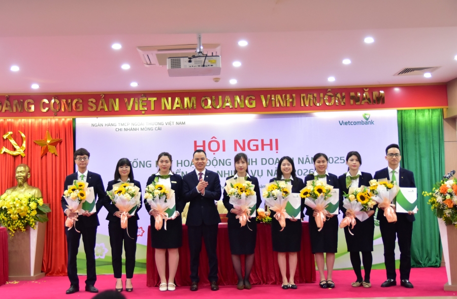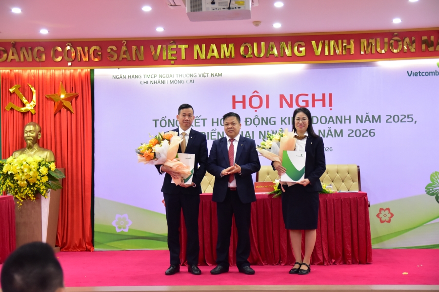 Ngày 24/01/2026, Vietcombank Móng Cái đã trang trọng tổ chức Hội nghị tổng kết hoạt động kinh doanh năm 2025, triển khai nhiệm vụ năm 2026 và Hội nghị người lao động năm 2026. Tham dự Hội nghị có ông Hoàng Quốc Chiến - Bí thư Chi bộ, Giám đốc chi nhánh; ông Trịnh Văn Chung - Phó Bí thư Chi bộ, Phó Giám đốc chi nhánh; ông Hoàng Đình Hưng - Phó Giám đốc, Chủ tịch Công đoàn cơ sở cùng toàn thể cán bộ nhân viên và người lao động Vietcombank Móng Cái.