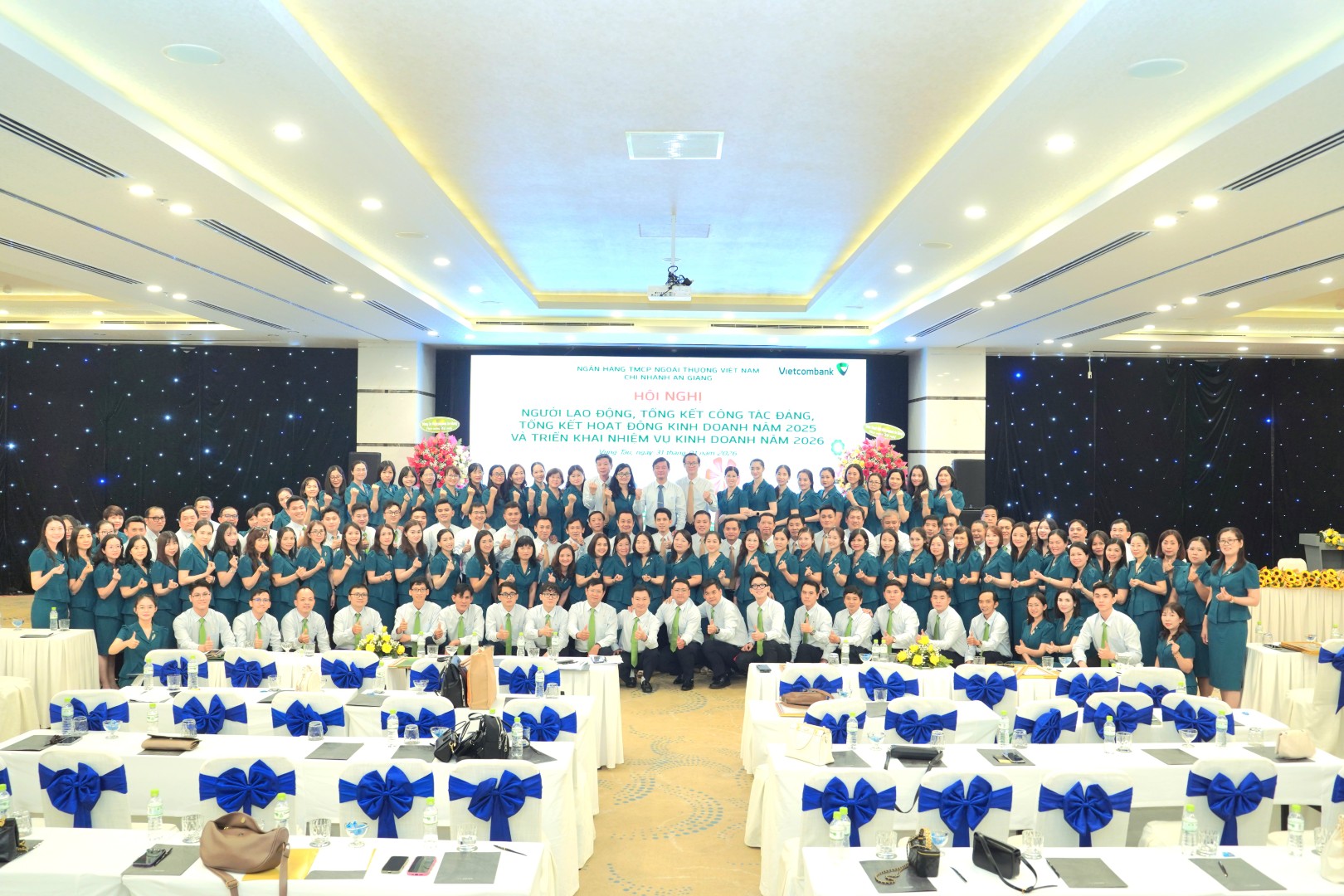 Sáng ngày 31/01/2026, tại Vũng Tàu (TP.HCM), Vietcombank An Giang đã tổ chức Hội nghị người lao động, tổng kết công tác Đảng, hoạt động kinh doanh và triển khai nhiệm vụ năm 2026 với sự tham gia và chủ trì của đ/c Trần Lý Phước Thọ - Bí thư Đảng ủy, Giám đốc Chi nhánh cùng sự tham gia của các đ/c trong Đảng ủy, BGĐ, BCH Công đoàn cơ sở, Bí thư Chi đoàn cơ sở, các đ/c là Trưởng, phó các phòng trực thuộc của Chi nhánh và toàn thể cán bộ nhân viên, người lao động Vietcombank An Giang.