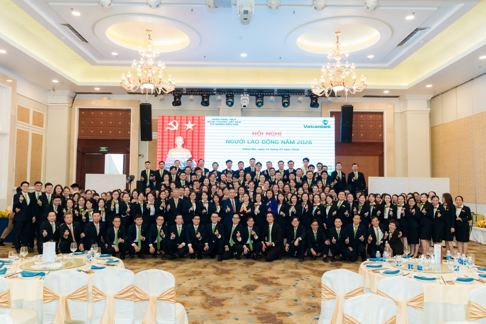 Tập thể cán bộ nhân viên Vietcombank Biên Hòa tại hội nghị, thể hiện tinh thần đoàn kết, đồng lòng và quyết tâm hoàn thành tốt các mục tiêu được giao.