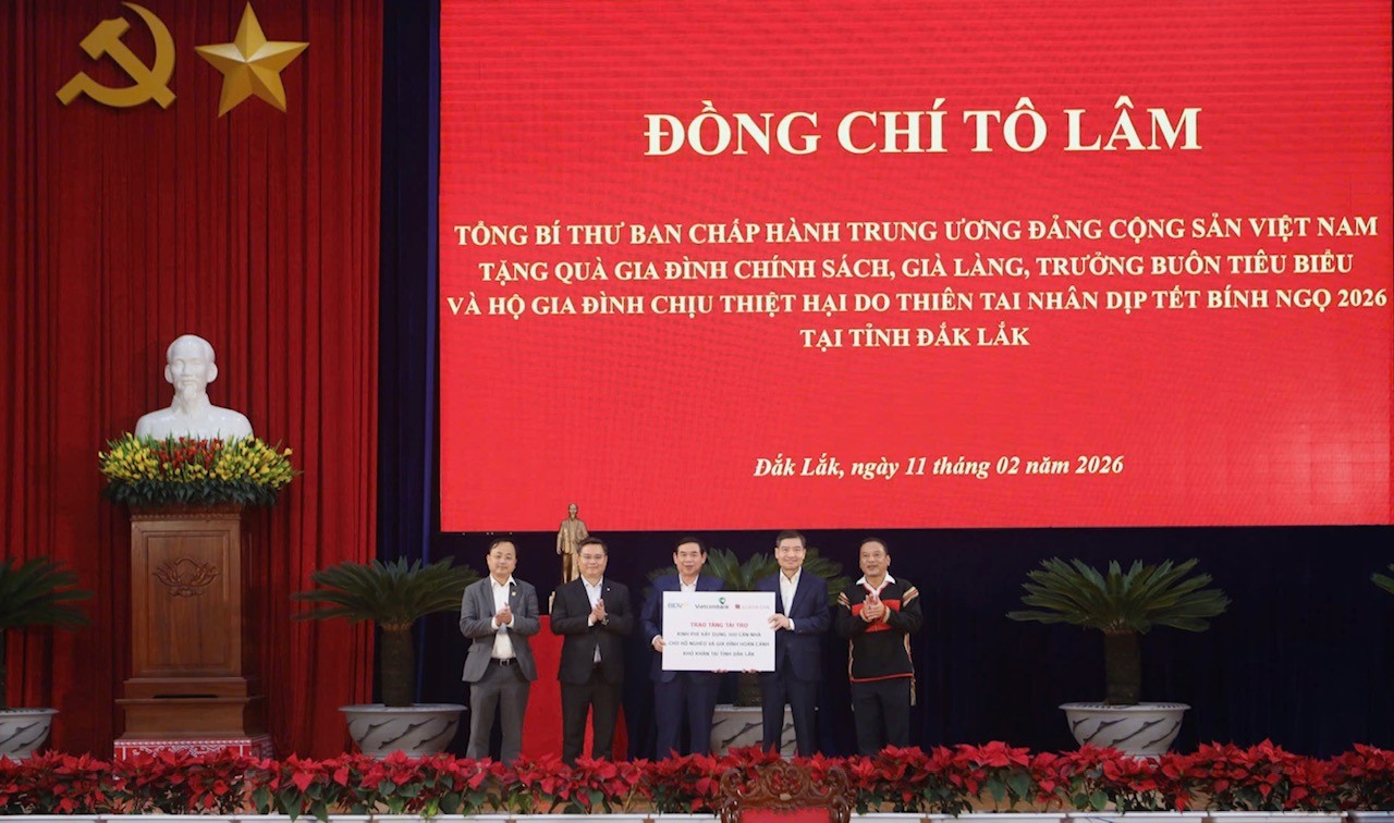 Sáng ngày 11/02/2026, trong không khí phấn khởi của những ngày đầu Xuân Bính Ngọ, Ngân hàng TMCP Ngoại thương Việt Nam (Vietcombank) đã tham gia trao tài trợ kinh phí xây dựng 300 căn nhà cho các hộ nghèo tại tỉnh Đắk Lắk. Đây là hoạt động ý nghĩa trong khuôn khổ chương trình công tác của Tổng Bí thư Tô Lâm tại vùng đất Tây Nguyên.
