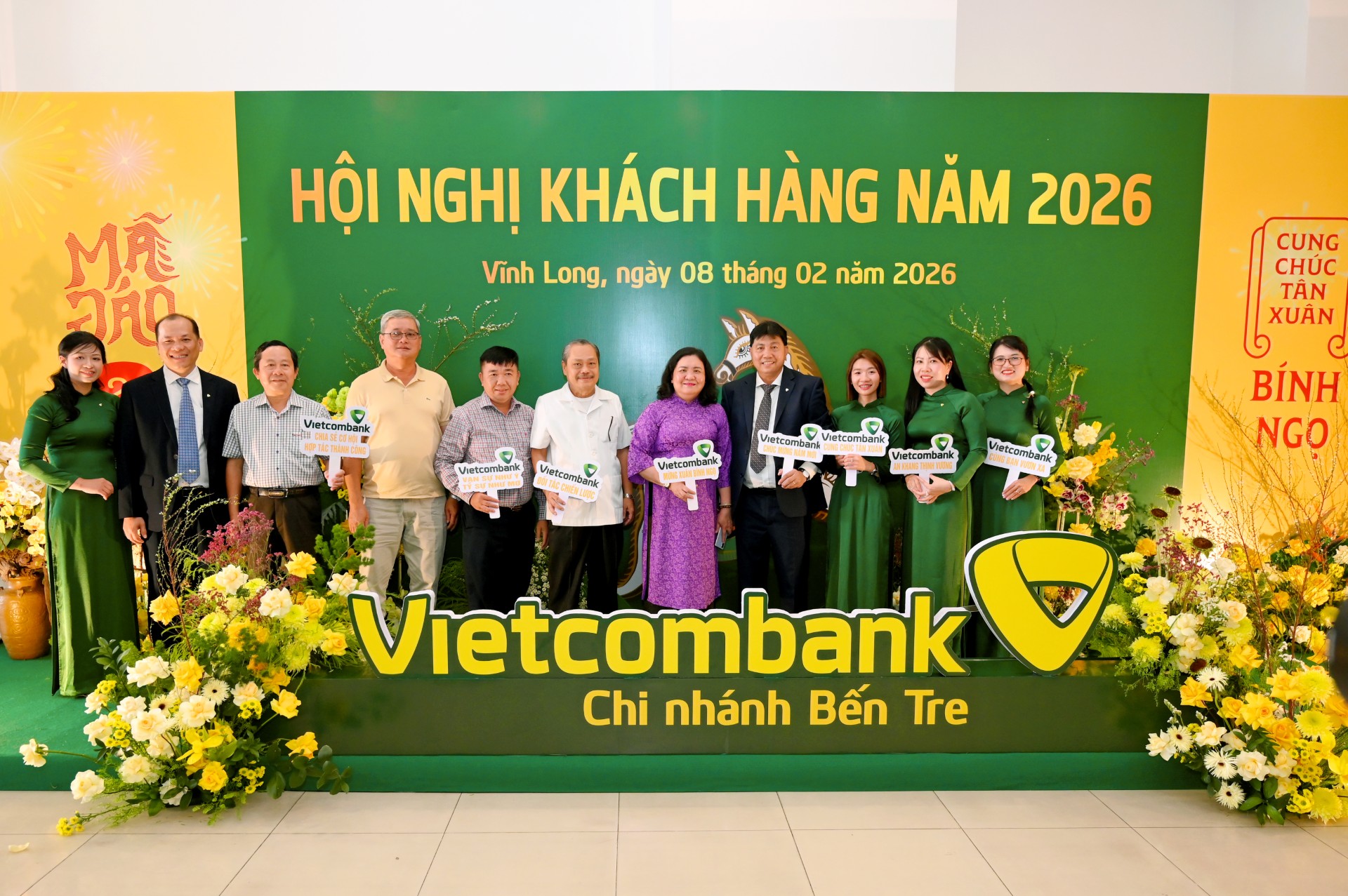 Trong không khí phấn khởi những ngày đầu năm mới 2026, Ngân hàng TMCP Ngoại thương Việt Nam - Chi nhánh Bến Tre đã trang trọng tổ chức Hội nghị Người lao động và Hội nghị tri ân khách hàng vào ngày 08/02/2026. Đây là sự kiện có ý nghĩa đặc biệt quan trọng tổng kết hoạt động năm 2025, triển khai nhiệm vụ năm 2026 đồng thời tri ân các khách hàng, đối tác đã tin tưởng, đồng hành cùng chi nhánh trong suốt thời gian qua.
