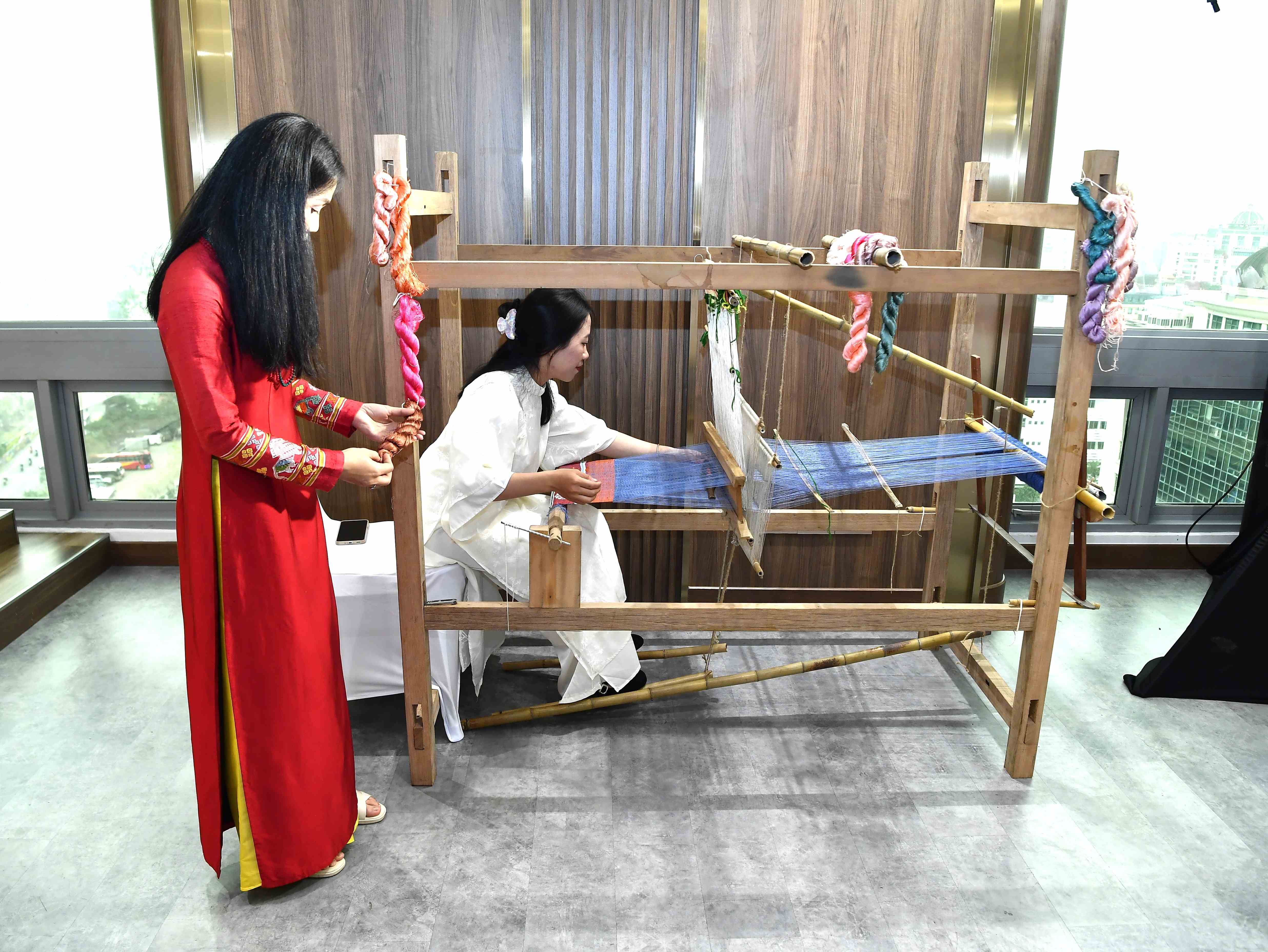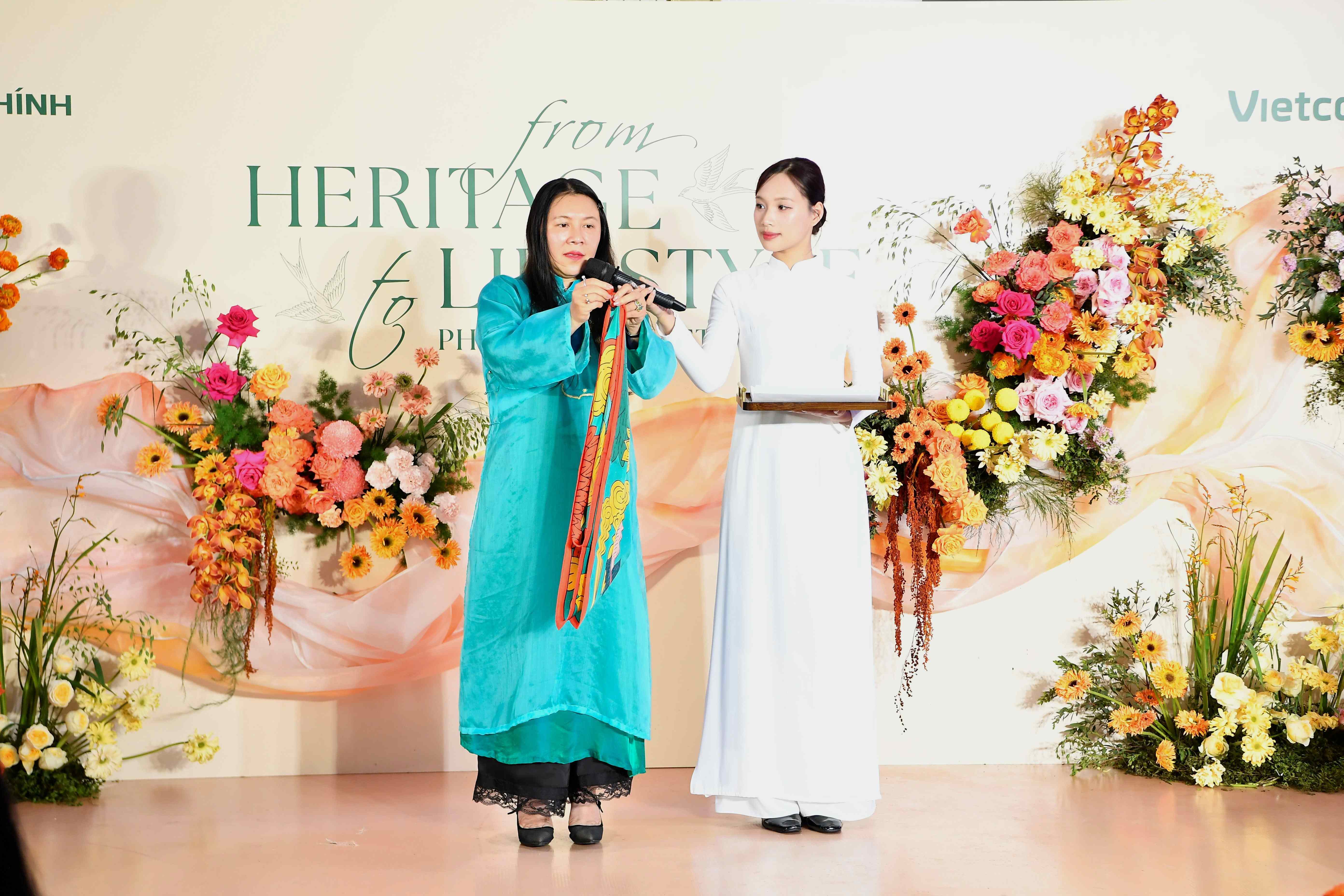 Nữ cán bộ Vietcombank TSC được tham gia tìm hiểu về các dòng lụa Việt Nam để thêm yêu những giá trị truyền thống, được hướng dẫn ứng dụng những phụ kiện như khăn lụa để tạo nên phong thái tự tin, chuyên nghiệp