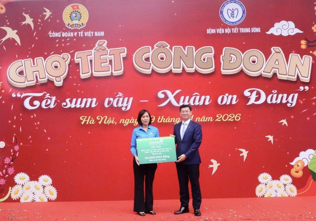 Sáng ngày 29/01/2026, tại Bệnh viện Nội tiết Trung ương đã diễn ra chương trình Chợ Tết Công đoàn - Xuân 2026, kết hợp tiếp nhận kinh phí hỗ trợ bệnh nhân có hoàn cảnh khó khăn do Vietcombank Nam Hà Nội hỗ trợ. Chương trình là hoạt động có ý nghĩa nhân văn sâu sắc, thể hiện sự gắn bó, đồng hành và trách nhiệm xã hội của Vietcombank Nam Hà Nội đối với ngành y tế trong nỗ lực chăm sóc, bảo vệ sức khỏe nhân dân, đặc biệt là các bệnh nhân mắc các bệnh nội tiết phức tạp cần điều trị kéo dài với chi phí lớn.