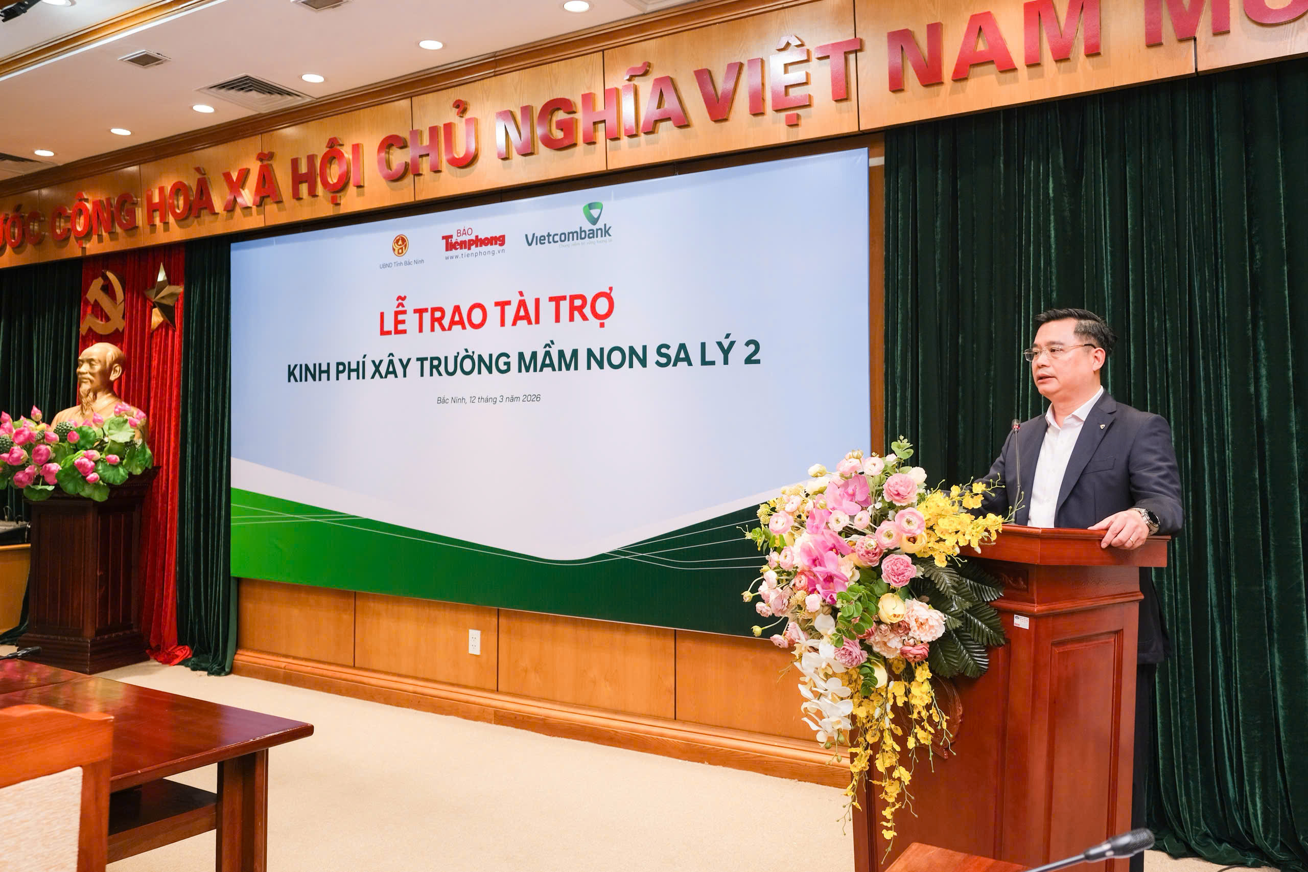 Ngày 12/3/2026, tại trụ sở UBND tỉnh Bắc Ninh, Ngân hàng TMCP Ngoại thương Việt Nam (Vietcombank) phối hợp với Báo Tiền Phong và UBND tỉnh tổ chức Lễ trao kinh phí tài trợ 10 tỷ đồng để xây dựng Trường Mầm non Sa Lý 2. Đây là minh chứng cho cam kết bền bỉ của Vietcombank trong sự nghiệp “trồng người” tại những địa bàn khó khăn nhất của Tổ quốc.