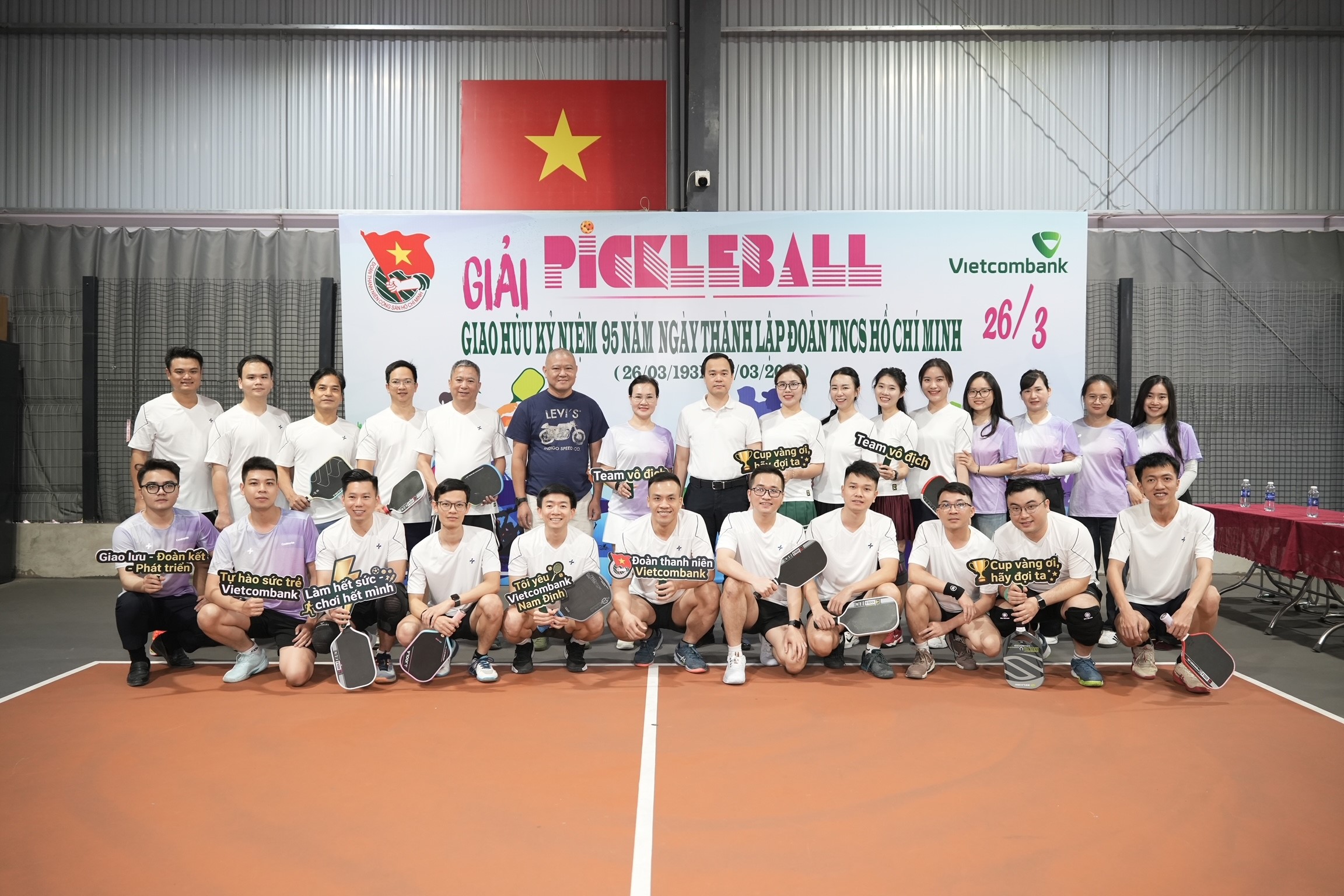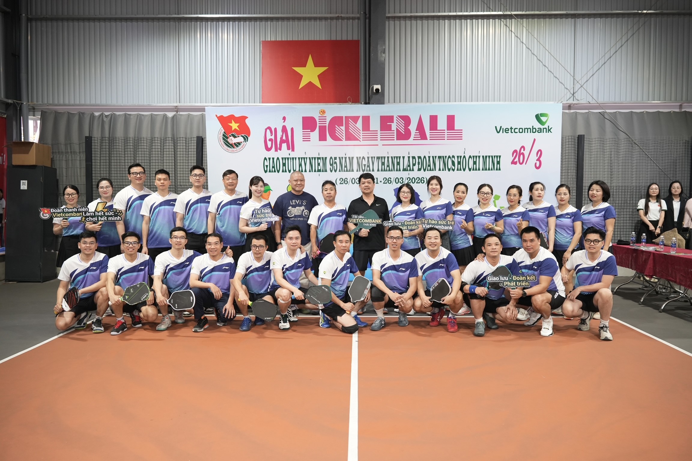 Hướng tới kỷ niệm 95 năm ngày thành lập Đoàn TNCS Hồ Chí Minh (26/03), sáng ngày 14/03/2026, Ban chấp hành Đoàn cơ sở, Chi đoàn cơ sở 03 chi nhánh Vietcombank Thái Bình, Nam Định và Đông Quảng Ninh đã phối hợp cùng tổ chức giải đấu giao hữu pickleball tại tỉnh Hưng Yên.