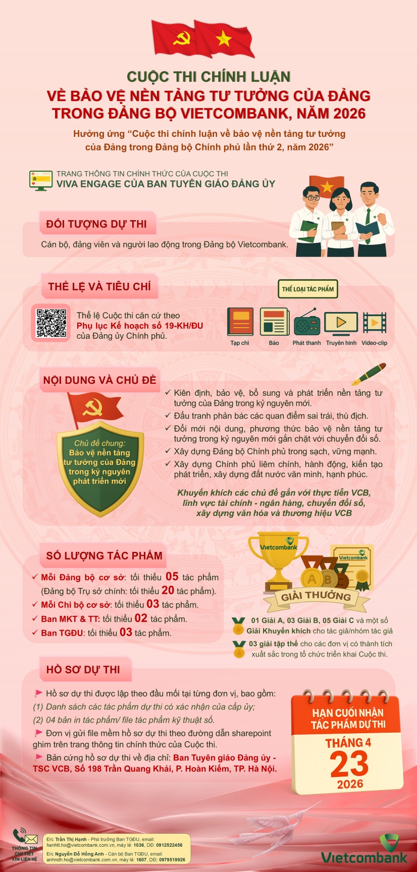 [Infographic] Khởi động cuộc thi chính luận về bảo vệ nền tảng tư tưởng của Đảng trong Đảng bộ Vietcombank và hưởng ứng cuộc thi trong Đảng bộ Chính phủ lần thứ 2, năm 2026