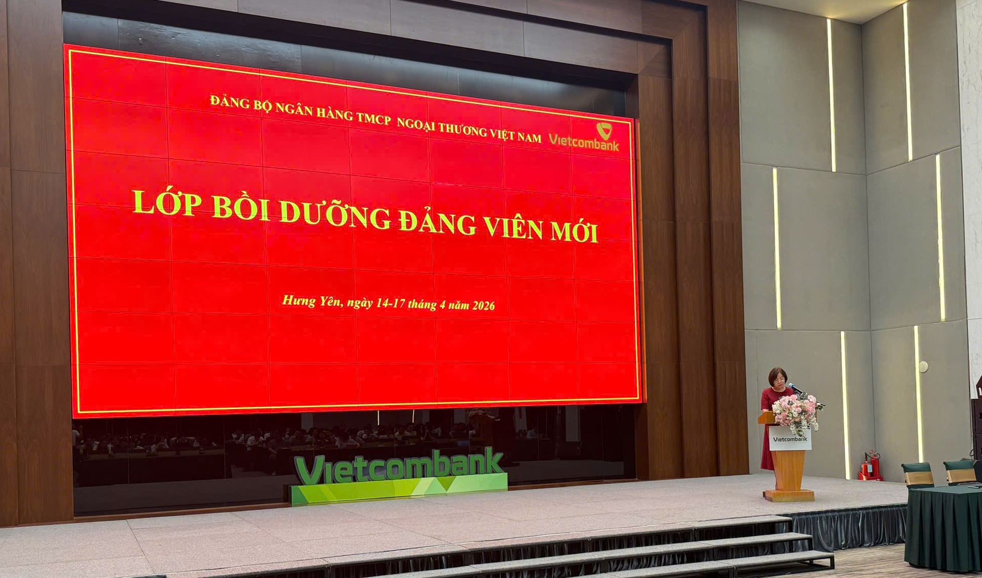Thực hiện kế hoạch phát triển đảng viên của Đảng bộ Ngân hàng TMCP Ngoại thương Việt Nam (Vietcombank) nhiệm kỳ 2025-2030 và kế hoạch đào tạo năm 2026 được Thường trực Đảng ủy phê duyệt, ngày 14/4/2026, tại Trường Đào tạo và Phát triển Nguồn nhân lực Vietcombank (Ecopark - Hưng Yên), Ban Tổ chức Đảng ủy Vietcombank đã tổ chức khai giảng lớp bồi dưỡng lý luận chính trị dành cho Đảng viên mới của các Đảng bộ, Chi bộ cơ sở trực thuộc.