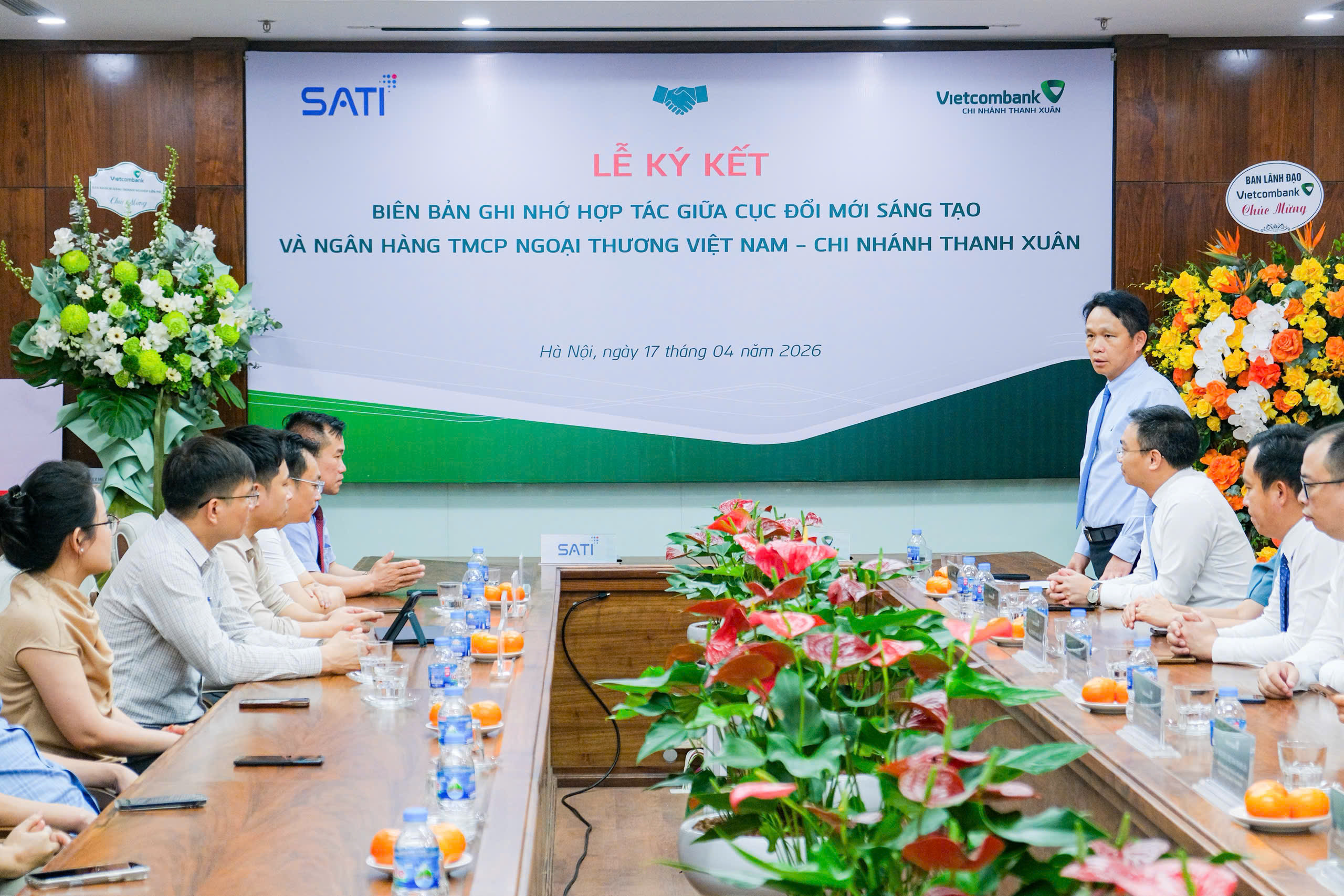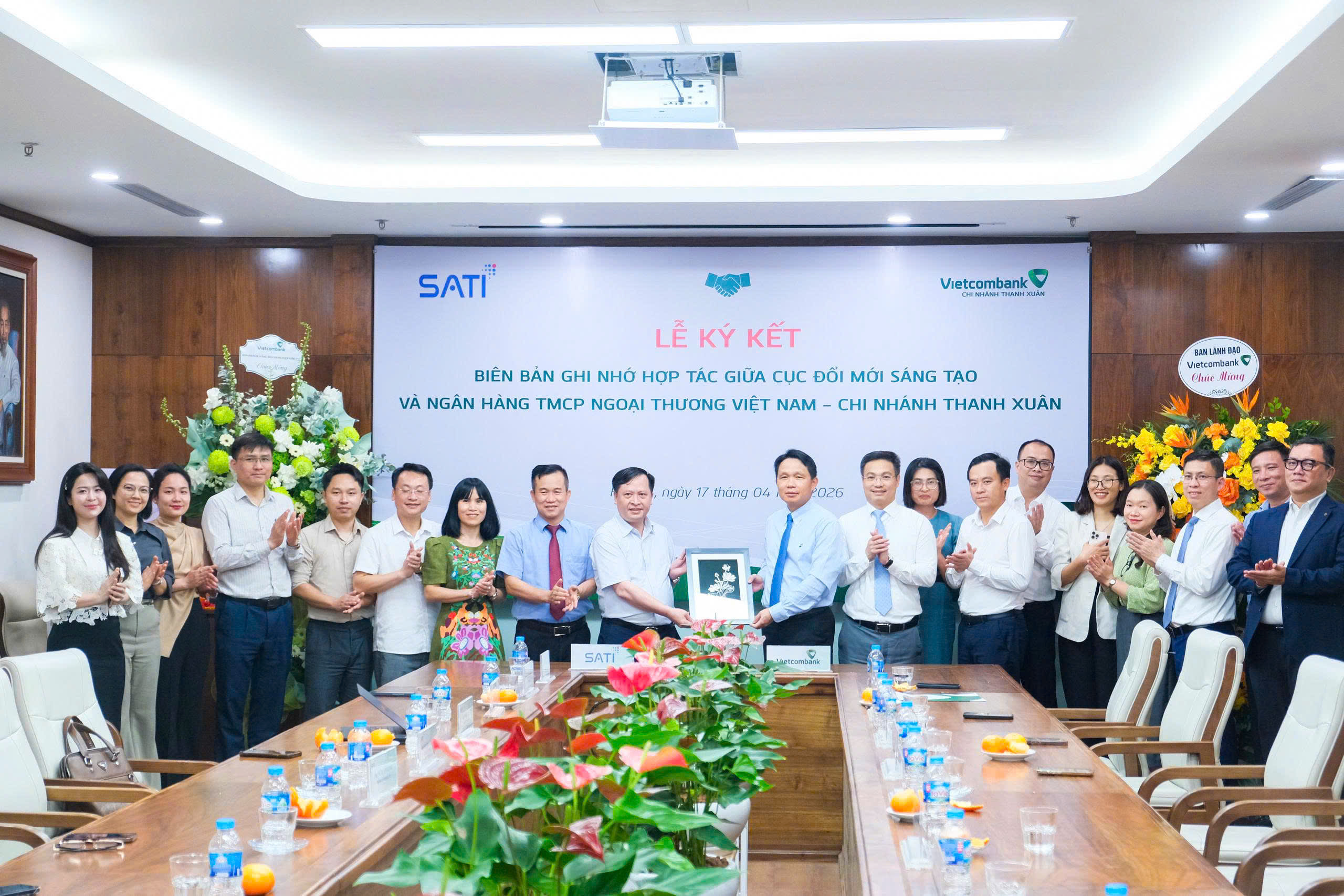 Ngày 17/4/2026, tại Hà Nội, Ngân hàng TMCP Ngoại thương Việt Nam - chi nhánh Thanh Xuân (Vietcombank Thanh Xuân) và Cục Đổi mới sáng tạo - Bộ Khoa học và Công nghệ (Cục ĐMST) đã ký kết Biên bản ghi nhớ về việc phối hợp cung ứng dịch vụ. Đây là cột mốc quan trọng góp phần mở ra những cơ hội hợp tác mạnh mẽ và toàn diện hơn vào sự phát triển của hai đơn vị.