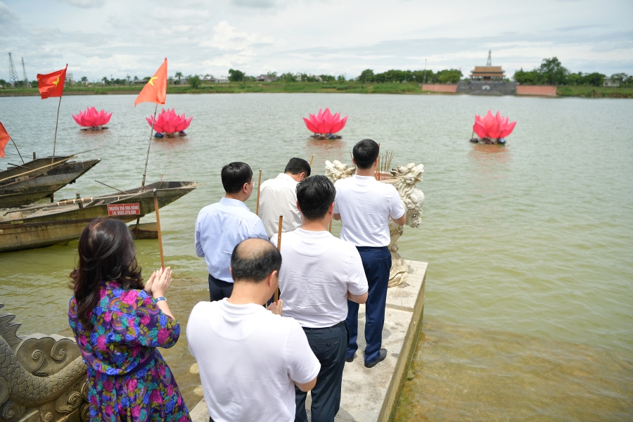 Các đ/c lãnh đạo Vietcombank và lãnh đạo tỉnh Quảng Trị dâng hương tri ân các AHLS bên dòng sông Thạch Hãn