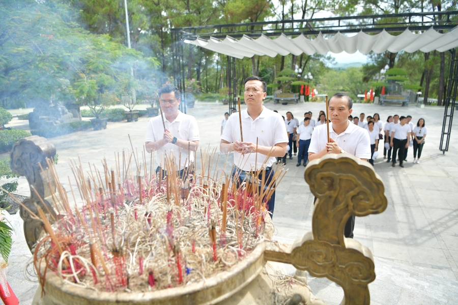 Đoàn đại biểu Đảng bộ Vietcombank dâng hương tưởng niệm, tri ân các AHLS tại Đền tưởng niệm liệt sỹ Trường Sơn - Bến Tắt