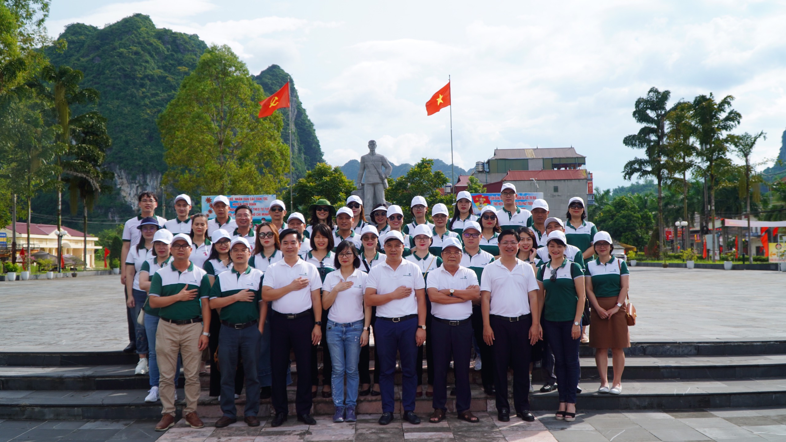 Đoàn đại biểu khối Nhân sự Vietcombank chụp ảnh lưu niệm tại Bảo tàng Khởi nghĩa Bắc Sơn