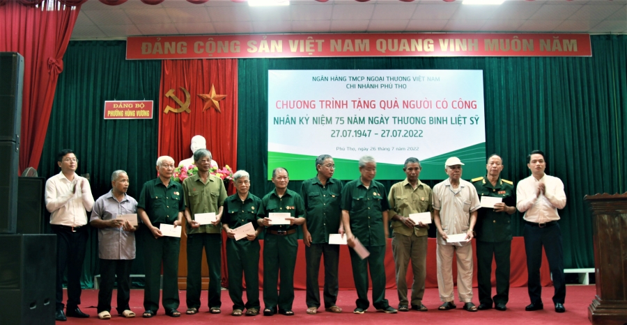 Với tinh thần “Uống nước nhớ nguồn”, luôn ghi nhớ công ơn của các anh hùng liệt sỹ đã hy sinh cho hòa bình, thống nhất đất nước, hàng năm ngoài nhiệm vụ chính là kinh doanh, công tác an sinh xã hội, hoạt động từ thiện, tri ân luôn được Vietcombank Phú Thọ quan tâm thực hiện. Tiếp tục phát huy giá trị đạo lý đền ơn đáp nghĩa của dân tộc, khẳng định tính nhân văn của bản sắc văn hóa Vietcombank bằng những hành động thiết thực. Đoàn đã tới thăm, động viên và trao quà tới 5 Mẹ Việt Nam anh hung, trao quà cho 40 hộ gia đình thương binh, liệt sĩ, người có công với cách mạng tại Thị xã Phú Thọ. Tổng giá trị phần quà trao tặng là 50 triệu đồng.
